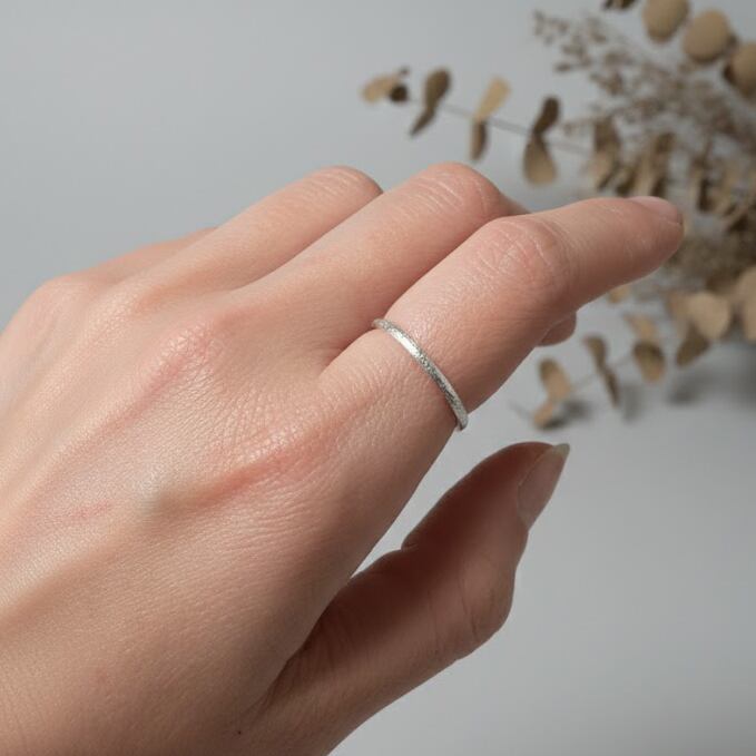 細めのリングになっておりますので、指輪をつけなれていない方でも違和感なくご使用いただけます。