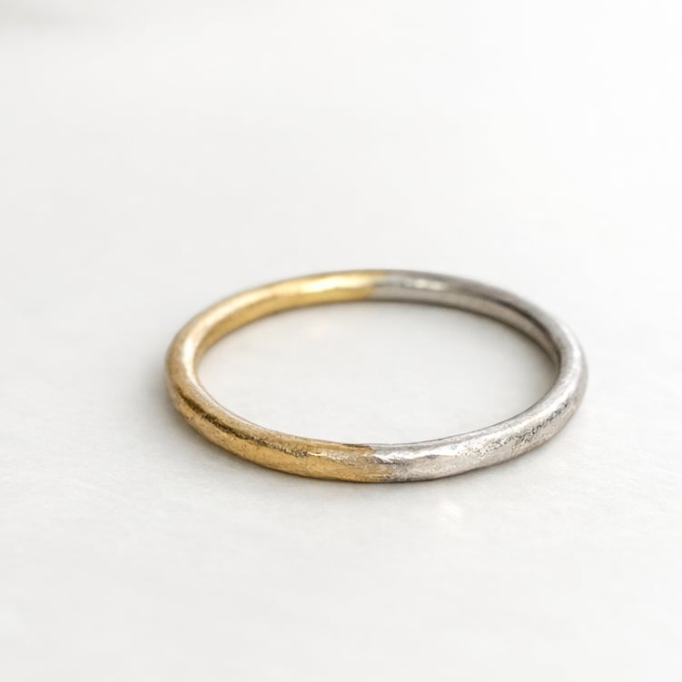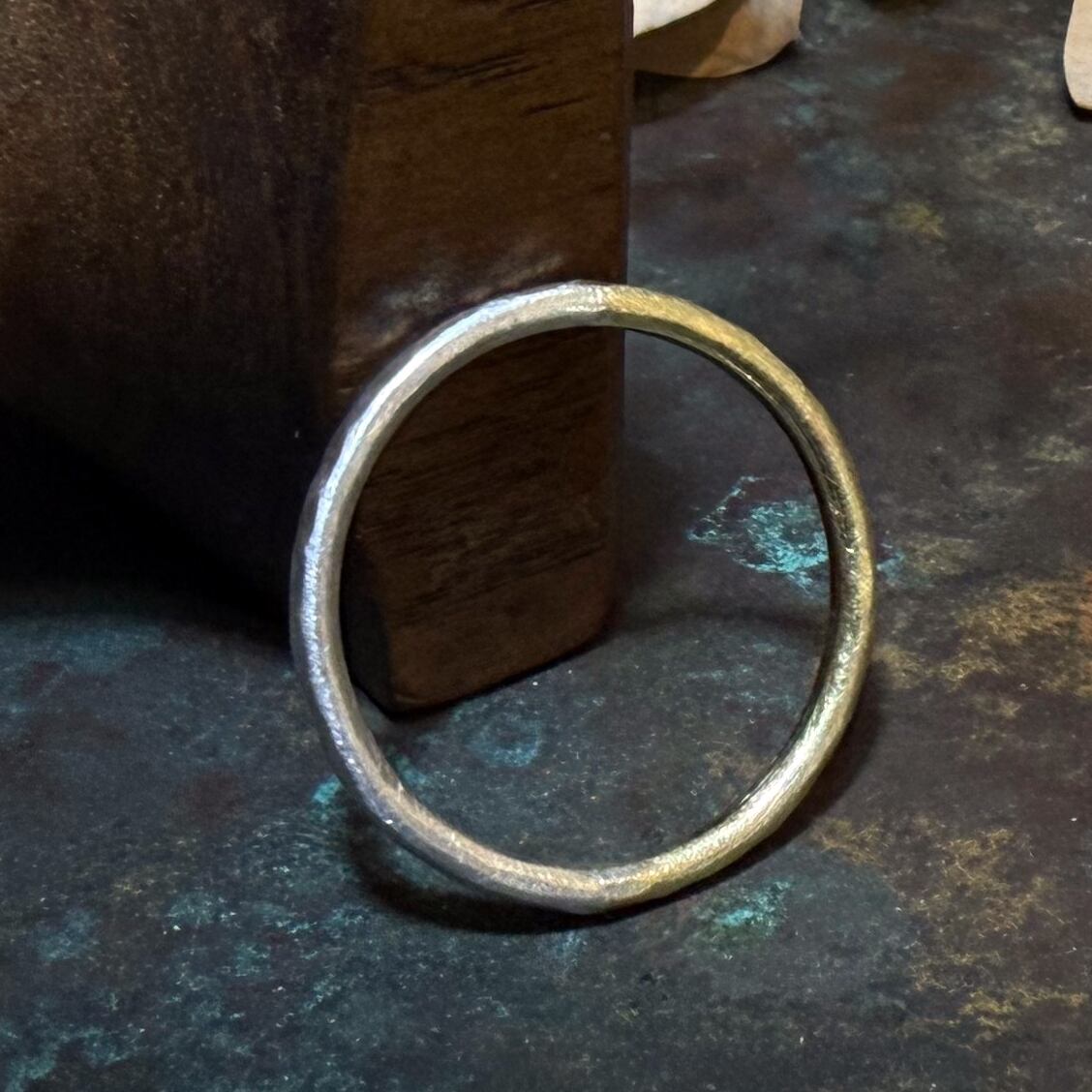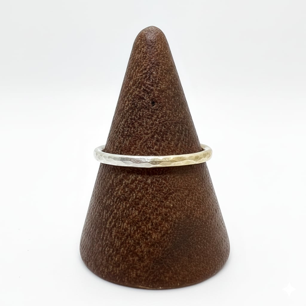 ぷっくりした厚みのあるリングに槌目加工を施したアイテムになります。